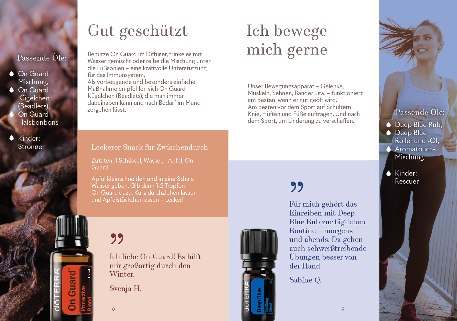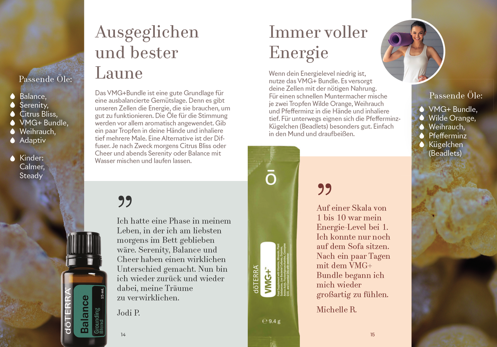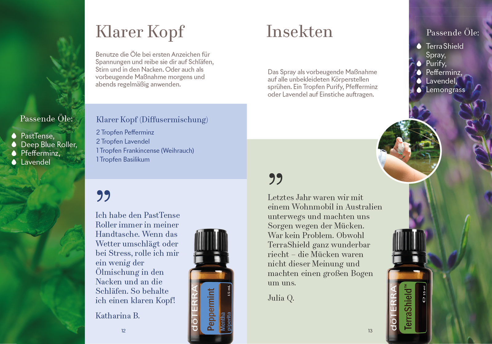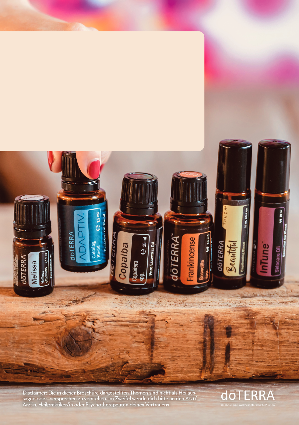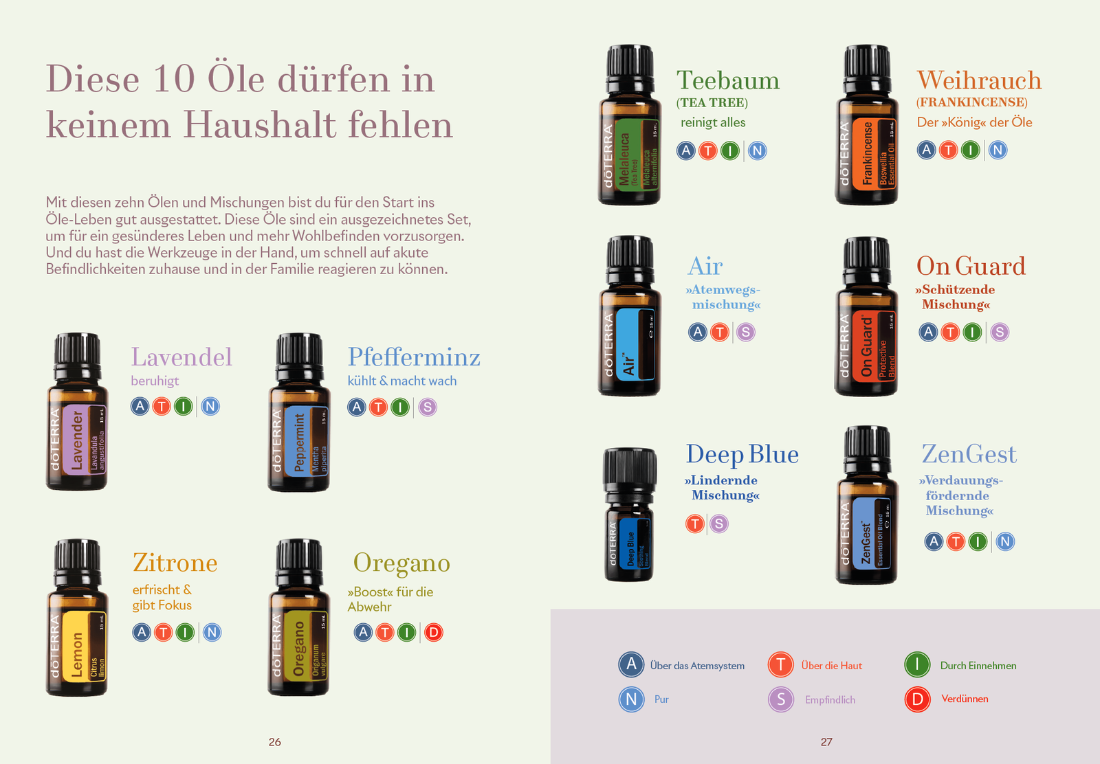 Diese kleine Broschüre erklärt kurz und kompakt auf 28 Seiten die Öle und die wichtigsten Anwendungen – ideal für alle, die sich zum ersten Mal mit den Ölen beschäftigen. Dabei werden nicht einzelne Öle erklärt, sondern häufige Anwendungsfelder und die dafür passenden Öle und Nahrungsergänzungen.